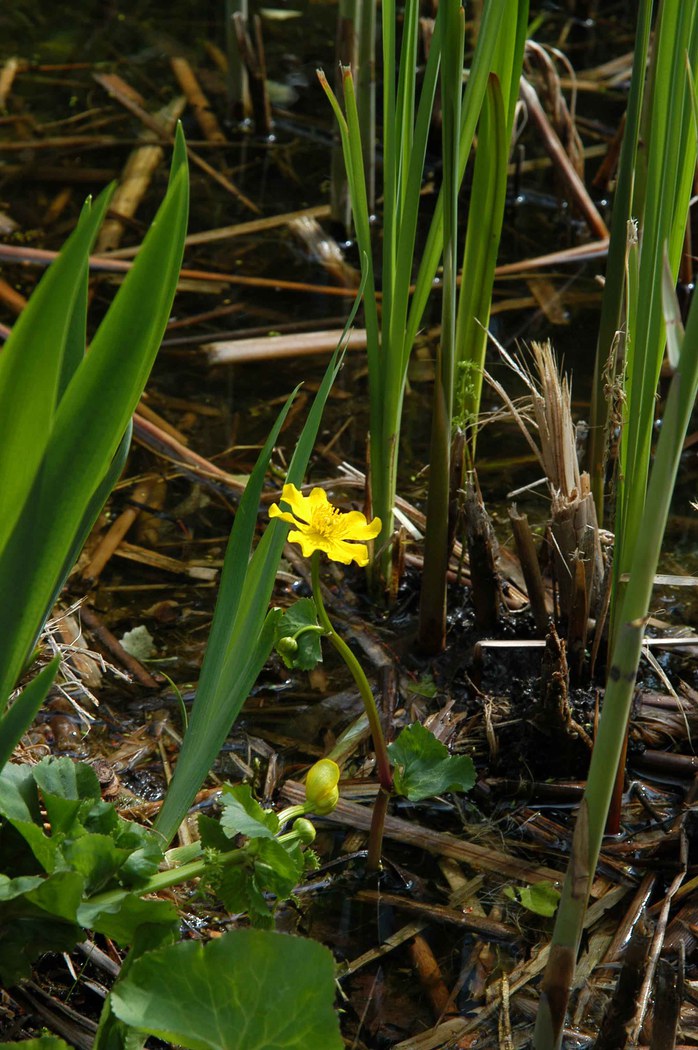 At the bottom of the pond, there are plants living in wetlands such as sedges (Carex pendula Hudson, Carex elata All.) and hemp-agrimony (Eupatorium cannabinum L.). Going to the center of the pond there are emergent plants with submerged root, this is the area with reed bands with common reed (Phragmites australis L.) and cattails (Typha latifolia L.), amongst these great willow-herb (Epilobium hirsutum L.), water flag (Iris pseudacorus L.), purple loosestrife (Lythrum salicaria L.), marsh euphorbia (Euphorbia palustris L.), the fern Telipteris palustris L. and the bulrush (Schoenoplectus lacustris (L.) Palla). It is worth to mention Senecio paludosus L., typical species living in the wetlands of Pianura Padana and in alpine valleys, almost disappeared for land reclaims and pollution. Where the water is deeper we find rooted-floating plants that have underground stems (rhizomes) from which new plants can sprout. Their leaves and flowers float on the water’s surface. Examples of these plants include waterlily (Nimphaea alba L.) yellow waterlily (Nuphar luteum (L.) S. et S.). There are then submersed plants are rooted at the bottom and grow up through the water like Myriophyllum verticillatum L. and species belonging to the genus Chara.