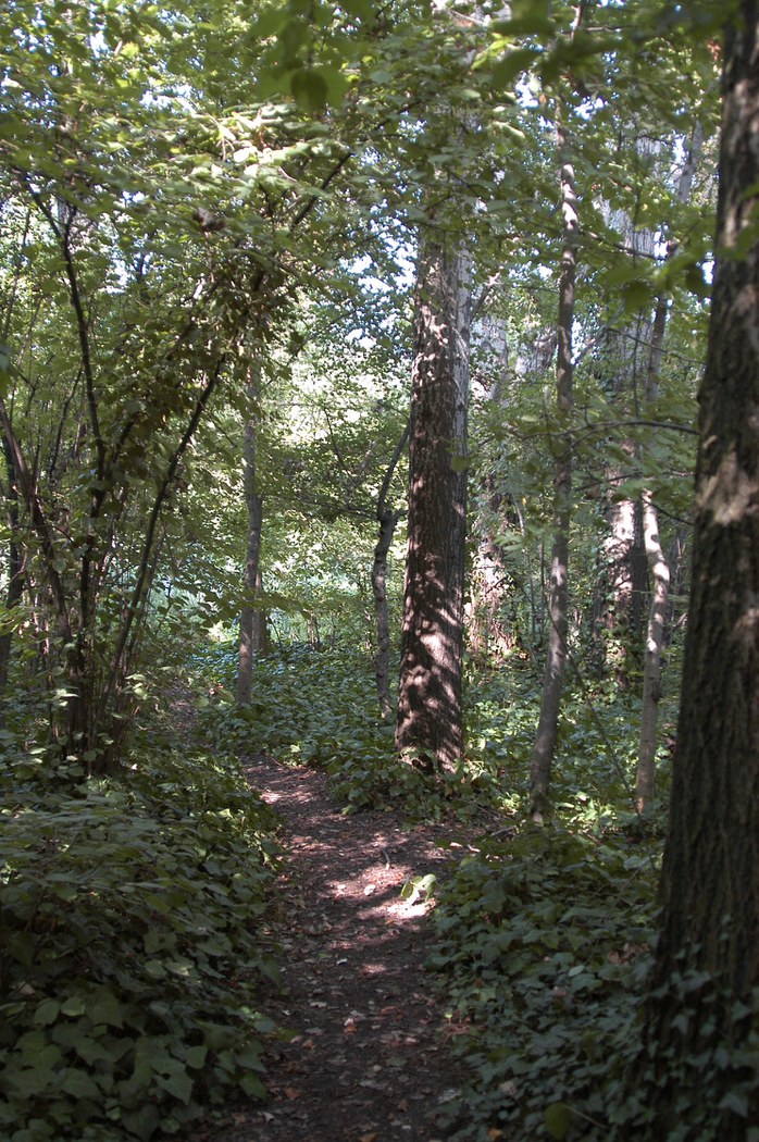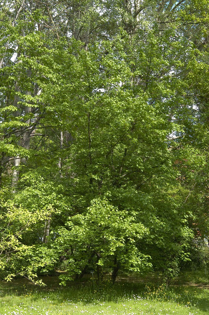 Nei pressi dello stagno dell’Orto Botanico si può attraversare un boschetto che rappresenta un esempio della boscaglia tipica di pianura, costituita da specie vegetali amanti dell’umidità, in grado di tollerare anche saltuarie inondazioni. Tra gli alberi ritroviamo qui soprattutto il Pioppo bianco, pianta termofila e amante della luce, dalla caratteristica corteccia bianco-grigia e dalle foglie inferiormente “vellutate”. Vi sono inoltre alcuni giovani Frassini ed alcuni Aceri. Tra gli arbusti si può notare il Salice rosso, così chiamato per il colore rossastro dei rami, che generalmente si trova lungo i corsi d’acqua in consociazione col Salice lanoso (Salix eleagnos) e col Pioppo, su suoli sia inondabili che asciutti. Altre specie arbustive presenti sono il Nocciolo, il Corniolo sanguinello, il Ligustro, il Sambuco, la Madreselva pelosa, il Caprifoglio. Interessante anche lo strato erbaceo, dove dominano le Carici e gli Equiseti, che crescono su un vero e proprio “tappeto” di Edera. Da ricordare inoltre le due specie protette Vinca minor L. e Vinca major L., stolonifere striscianti dai fiori azzurro-violetti, che non sono propriamente caratteristiche di questi ambienti, mentre le ritroviamo, rare, nei boschi mesofili della fascia collinare.