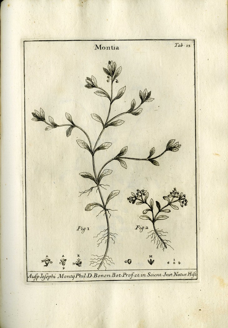Giuseppe Monti nacque a Bologna nell'anno 1682. Educato alle Lettere latine fin dalla prima adolescenza, si dedicò dapprima allo studio della farmacia poi della botanica. Appassionato botanico, in corrispondenza coi maggiori naturalisti europei, compilò nel 1719 un primo catalogo delle specie della campagna bolognese e vi ricomprese le graminacee e le piante a loro affini, delle quali fornì l'etimologia, ne descrisse i caratteri e ne insegnò gli usi medici ed i sinonimi. Fu designato, grazie alla fama conseguita, Professore del nuovo Istituto bolognese. Dopo due anni gli furono attribuiti sia l'incarico di Professore di storia naturale sia di Ostensore botanico, nel 1722 fu nominato dal Senato anche Prefetto dell'Orto. Divenuto anche custode del Museo Aldrovandi intraprese uno sforzo notevole di sistemazione e classificazione del materiale in esso contenuto.