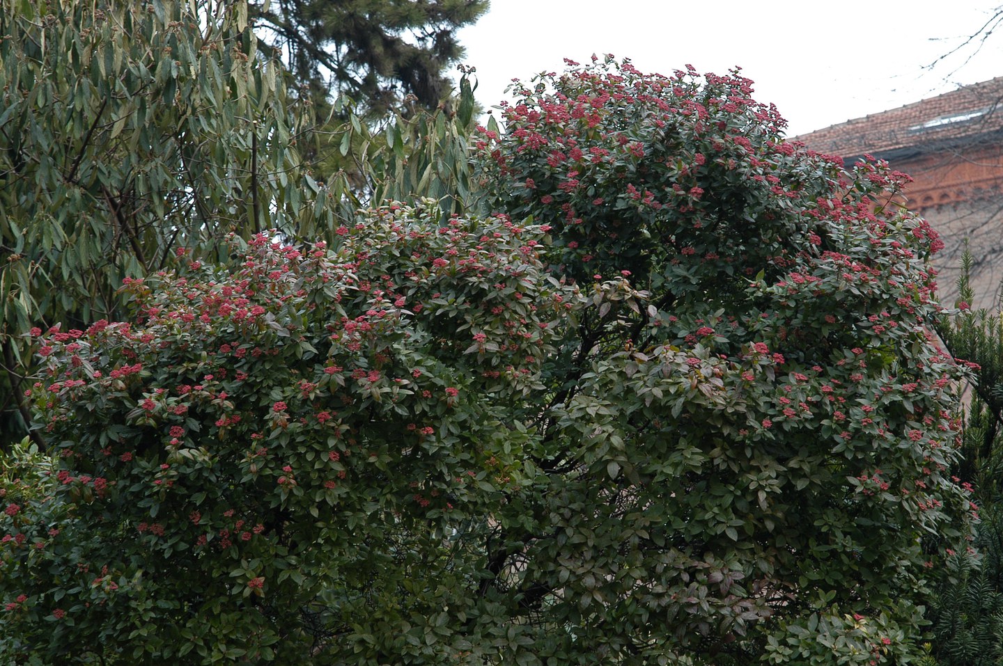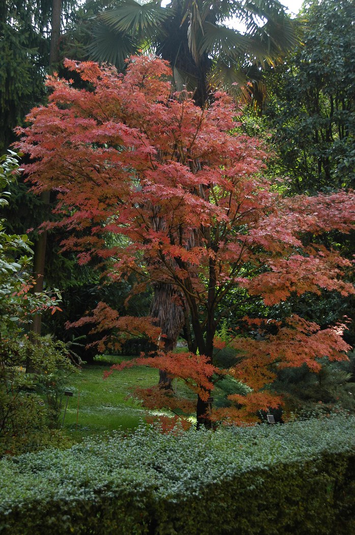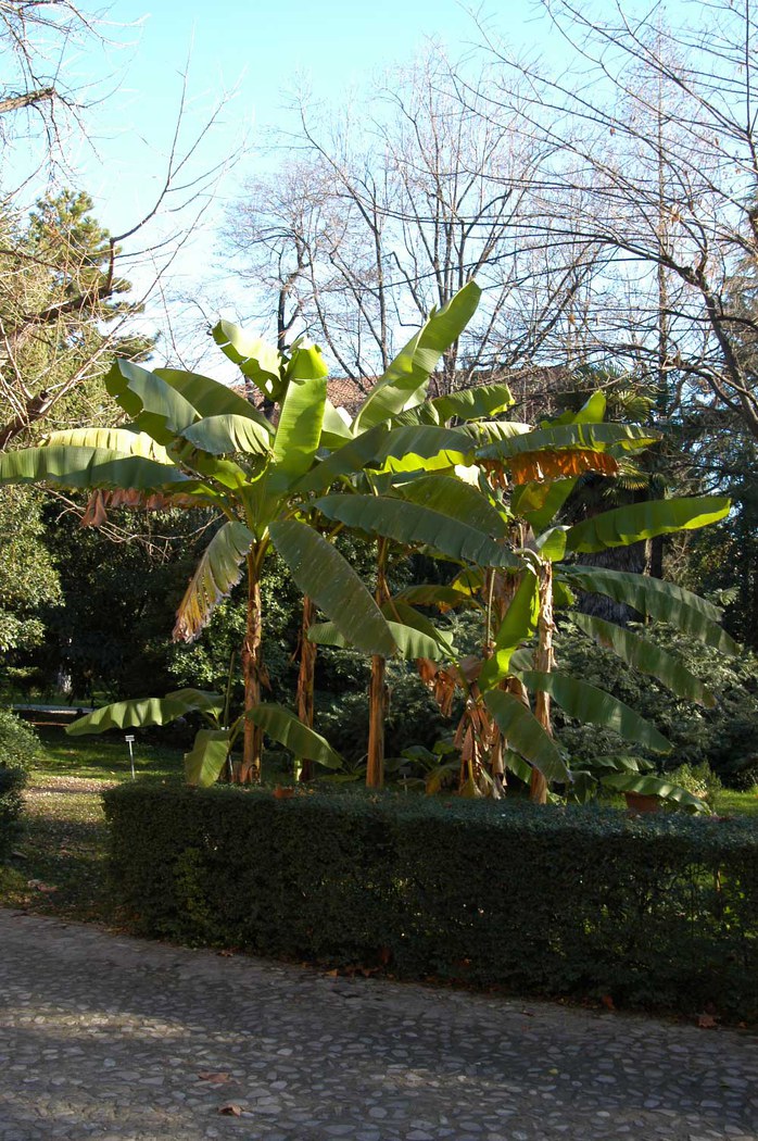 Il giardino anteriore è caratterizzato principalmente da piante arboree, in particolare gimnosperme, largamente coltivate negli Orti Botanici europei. Particolarmente interessanti sono il grande esemplare di Ginkgo (Ginkgo biloba L.), la pianta a seme di origine più antica che ebbe massima diffusione nel Giurassico superiore ed è sopravvissuta solo in una regione montuosa del Sud-Est della Cina, e l’esemplare di Metasequoia (Metasequoia glyptostroboides Hu et W.C. Cheng), conifera ritenuta estinta fino al 1945, quando ne furono scoperti alcuni esemplari nelle foreste della Cina occidentale. A esse si aggiungono piante arbustive ed erbacee a fioriture vistose.